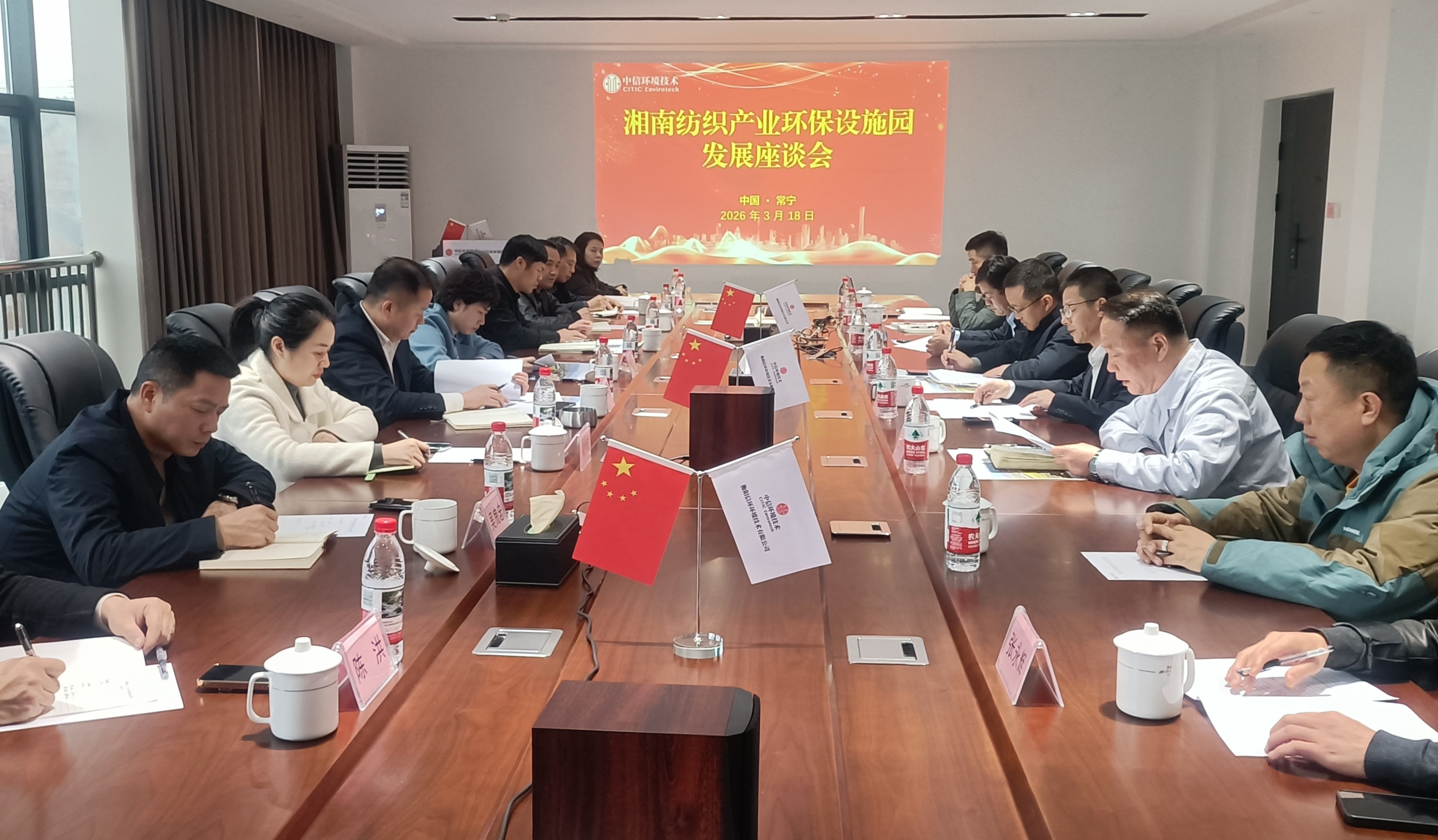 3月18日,中信环境党委副书记、总经理兼中信环境技术党委书记、董事长孙磊拜会常宁市委副书记、市长邓艳红,双方实地考察湘南纺织产业基地环保园项目(以下简称湘南项目)入园企业生产、热电联产供汽等情况,就进一步深化湘南项目合作,推动地方纺织产业高质量发展等方面进行深入交流。